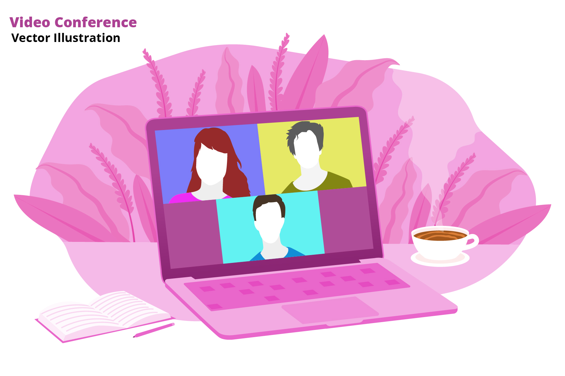 This one is another option for object vectors if you need a laptop image. When you download this image, you will also get other objects such as a cup of coffee, a notebook, and a pen. As its name suggests, the laptop image is also presented with three figures illustrating a video conference in progress.