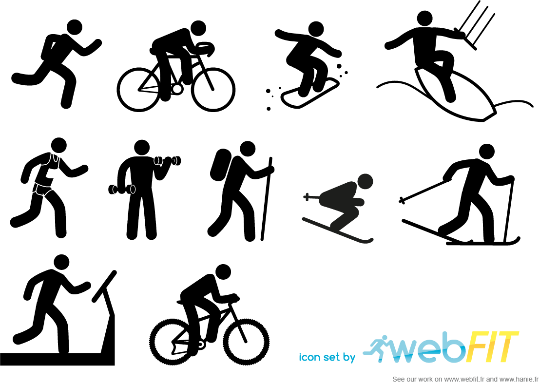 If you prefer a more silhouette type or stick-figure illustrations, these vector icons are suitable for you. It provides you with one but ten stick figures that depict various sports activities from skiing, cycling, running, hiking, surfing, etc. Therefore, you will have a lot of options to play around with these icons and see which object vectors will suit your design the most.