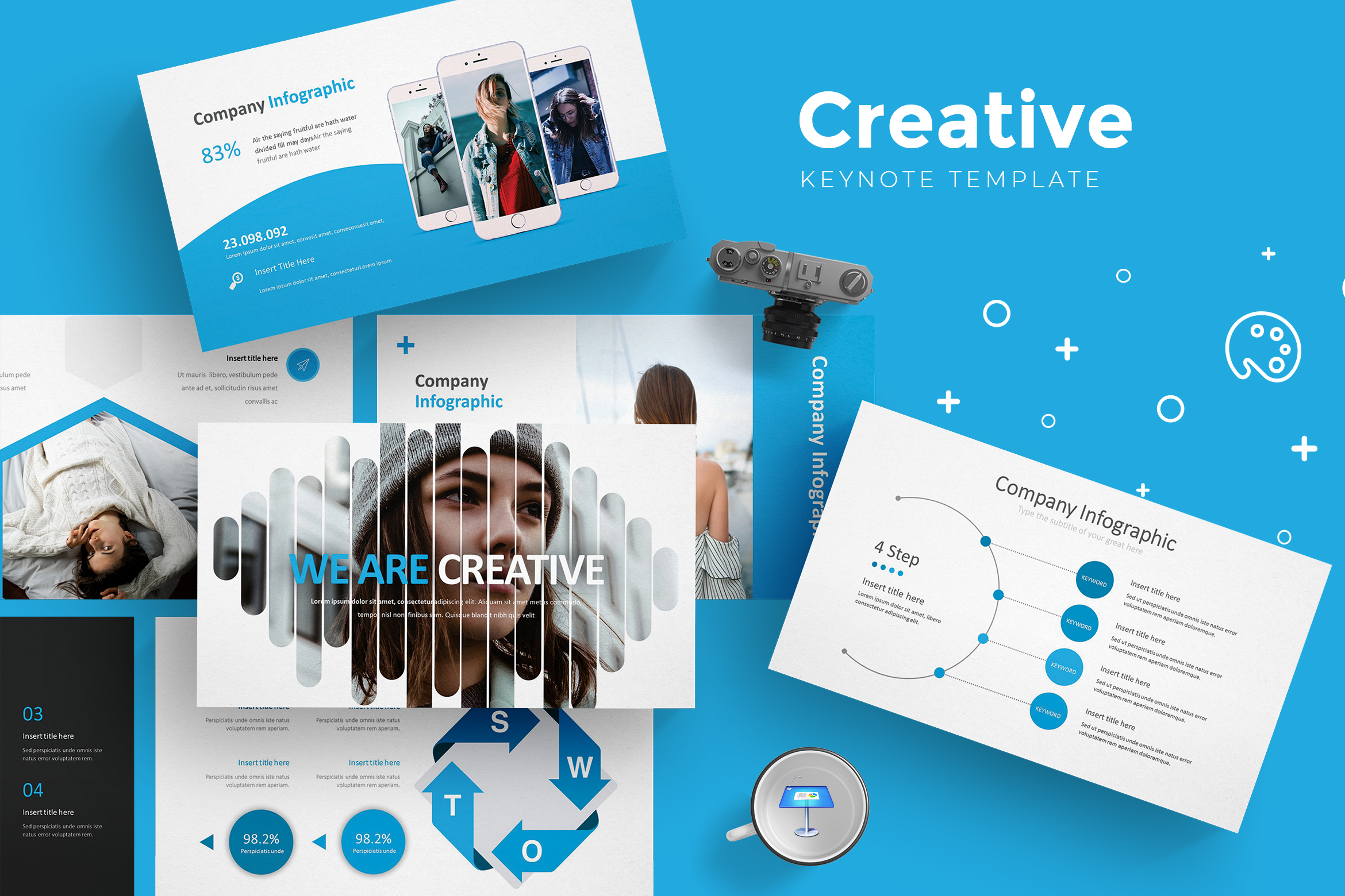 Vlog is an image-based template with a wide layout, a perfect theme for multimedia presentation. You can insert photos, graphics, animated clips, and videos to assist the presentation. Vlog also offers handcrafted infographics with resizing options for graphics and diagrams.